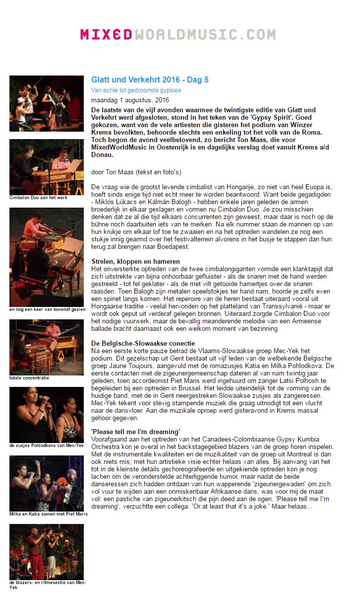 Ton Maas from Mixedworldmusic.com went to the Glatt und Verkehrt festival in Austria and couldn’t resist shaking his hip to the stomping sound of Mec Yek. You can read his report (in Dutch) by clicking the image below or on the Mixedworldmusic.com website.